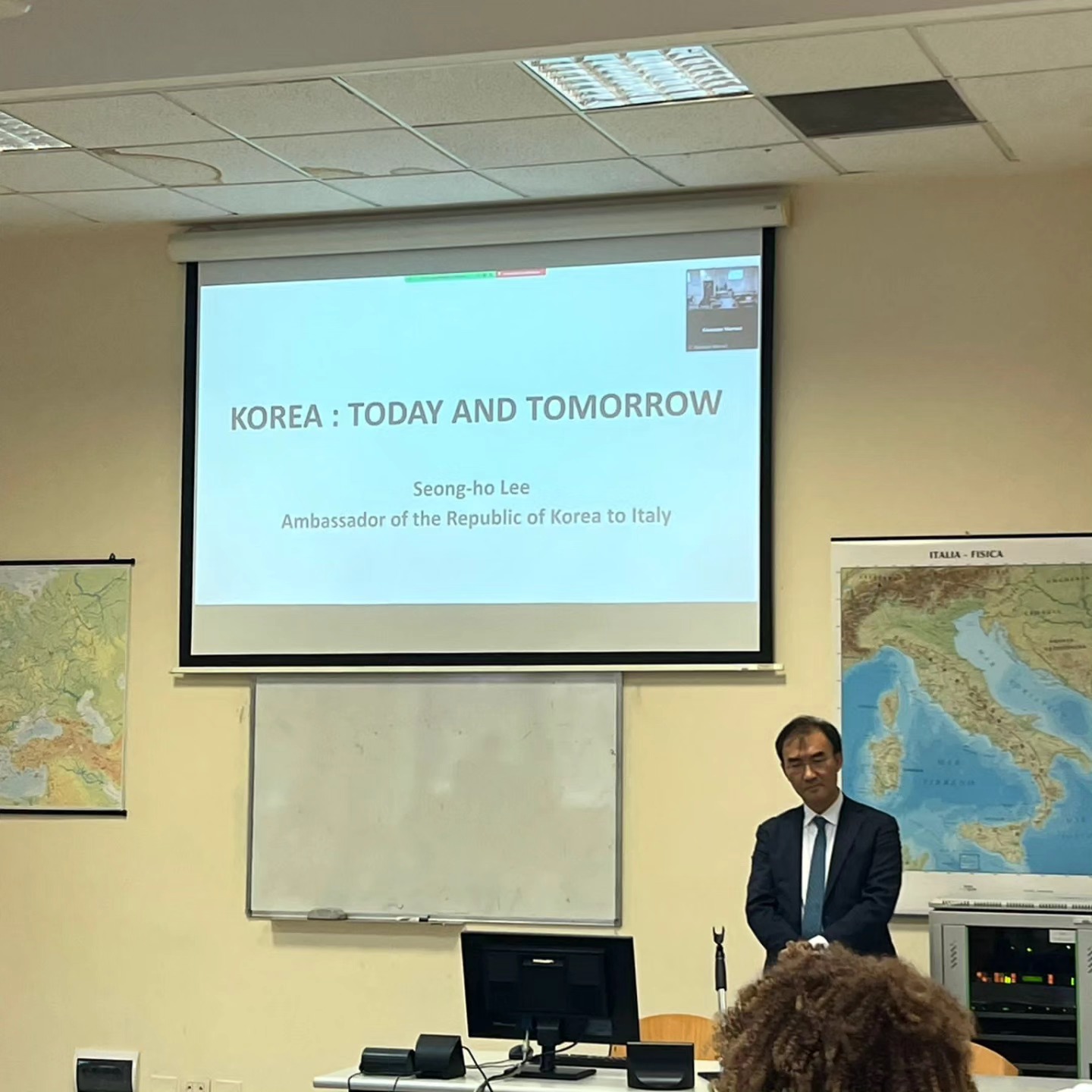 L’ambasciatore Seong-ho Lee, ambasciatore della Repubblica di Corea presso la Repubblica Italiana, ha effettuato una visita ufficiale presso l'ateneo di particolare rilevanza istituzionale e accademica, rappresentando un momento di grande prestigio per la comunità universitaria e per il consolidamento dei rapporti diplomatici e culturali tra i due paesi.Durante la sua visita l'Ambasciatore ha avuto modo di tenere una conferenza dal titolo “Korea: Today and Tomorrow”, dedicata all'analisi approfondita della posizione strategia della Corea nel panorama internazionale contemporaneo e dei rapporti diplomatici contemporanei tra Corea e Italia, evidenziando le opportunità di cooperazione futura e i settori di interesse comune. L'Ambasciatore ha inoltre potuto incontrare direttamente gli studenti interessati agli studi coreani e ha visitato la sede del CeSK, dove ha potuto conoscere meglio le attività del Centro e apprezzare la continua crescita degli studi coreani a Siena.