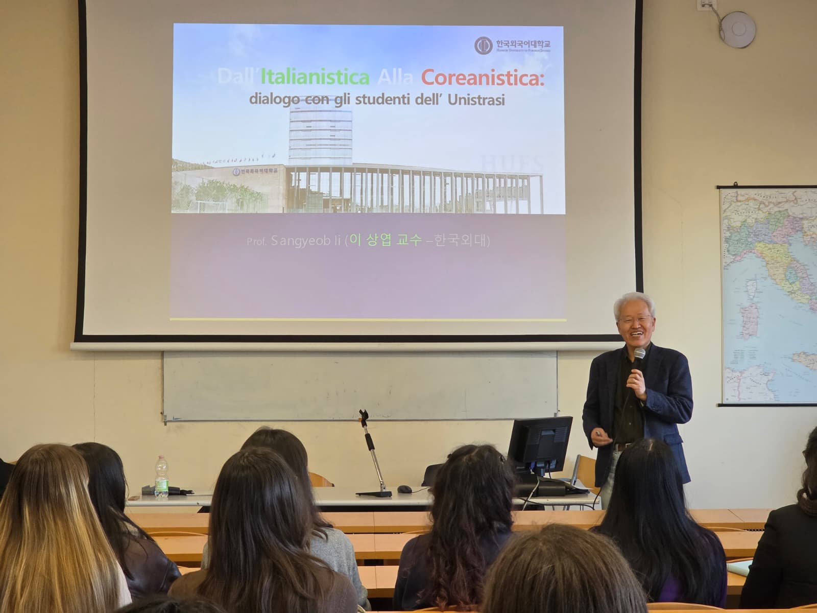 In questa occasione il prof. Ii Sangyeob, illustre italianista facente capo alla Hankuk University of Foreign Studies di Seoul e che ha passato un breve periodo a Siena come Visiting Fellow per il progetto THE (Transit Transnational Italian in Higher Education), ha incontratro le studentesse e gli studenti di Unistrasi interessati agli studi coreani per discutere con loro dei loro studi e delle loro ricerche e offrire tramite la sua lunga esperienza una finestra sullo stato degli studi italiani in Corea, a testimonianza dei sempre più vivi rapporti culturali tra i due Paesi.